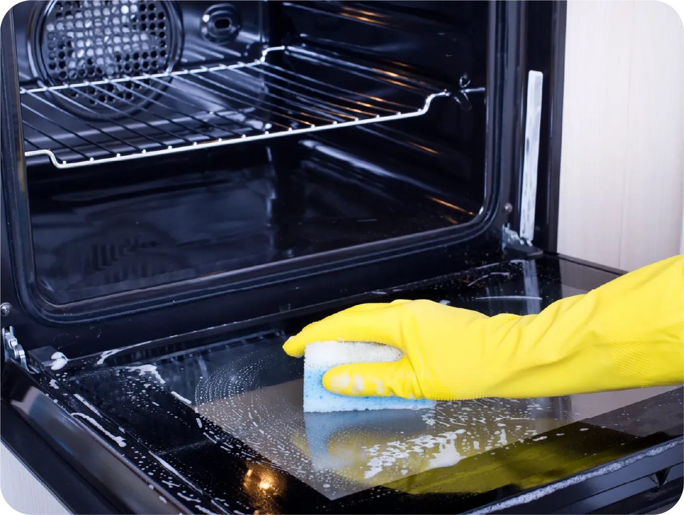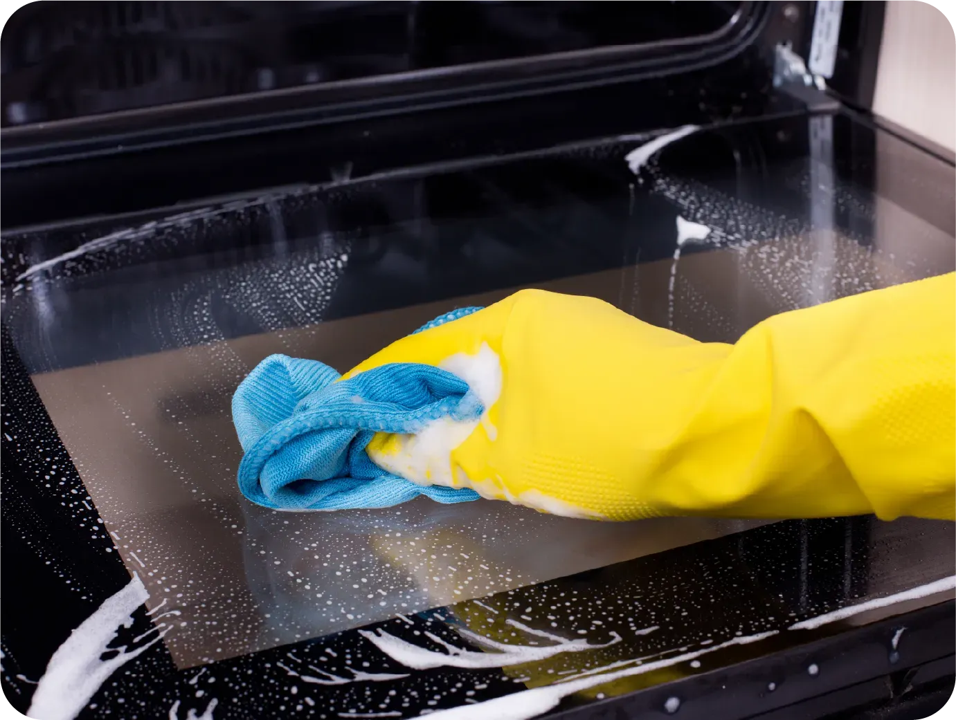 Our expert arrives, protects your floors, and leaves your oven sparkling.
